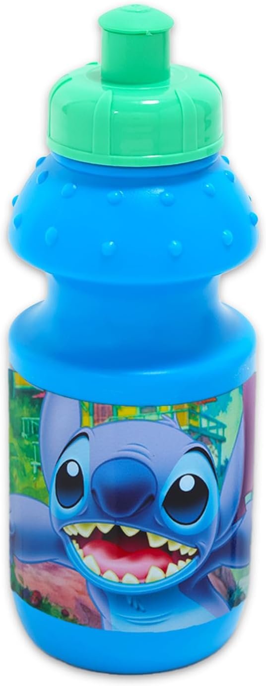Officially licensed Stitch water bottles for kids, boys and girls alike. Set also includes Stitch stickers and a Beach Kids door hanger.