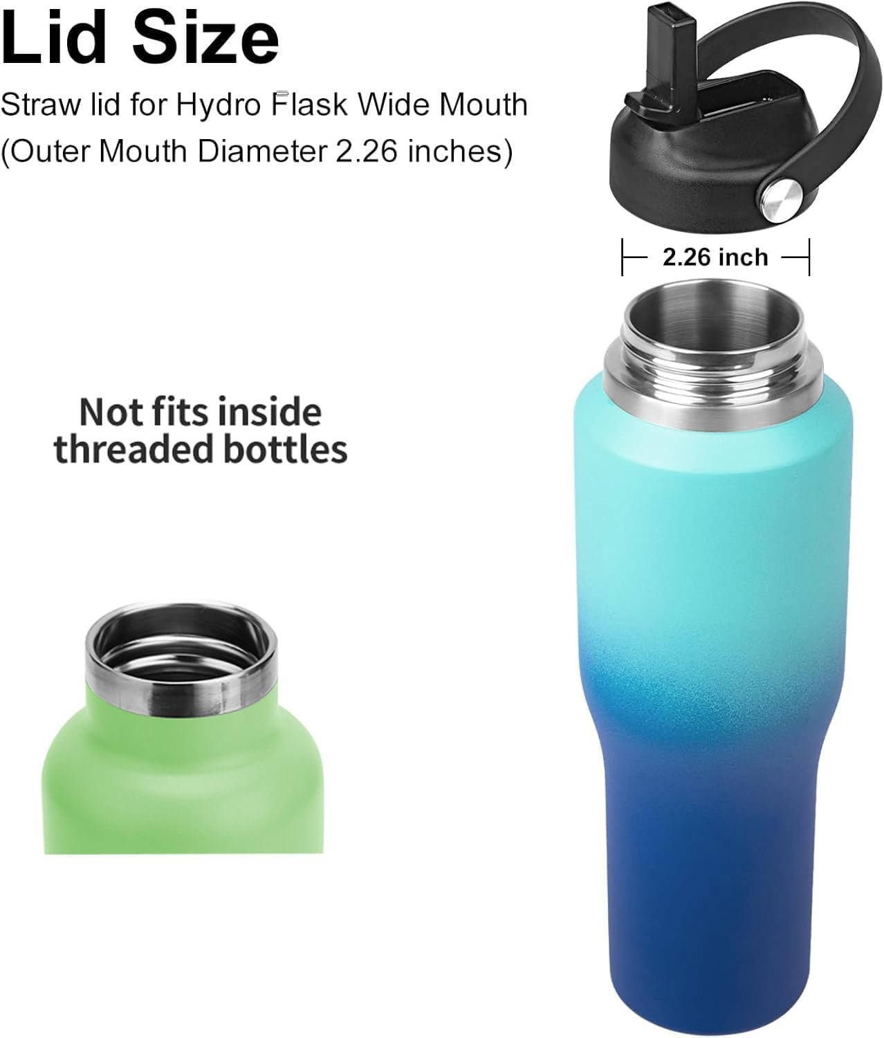 PERFECT FIT:The Straw lid is perfect fit for hydroflask wide mouth 12 18 21 24 32 40 and 64oz,The flex straw lid is applied to hydro flask replacement lids and accessories, NOT compatible with YETI, RTIC, OZARK TRAIL, Bubba, Manna, TAL 64 brands.