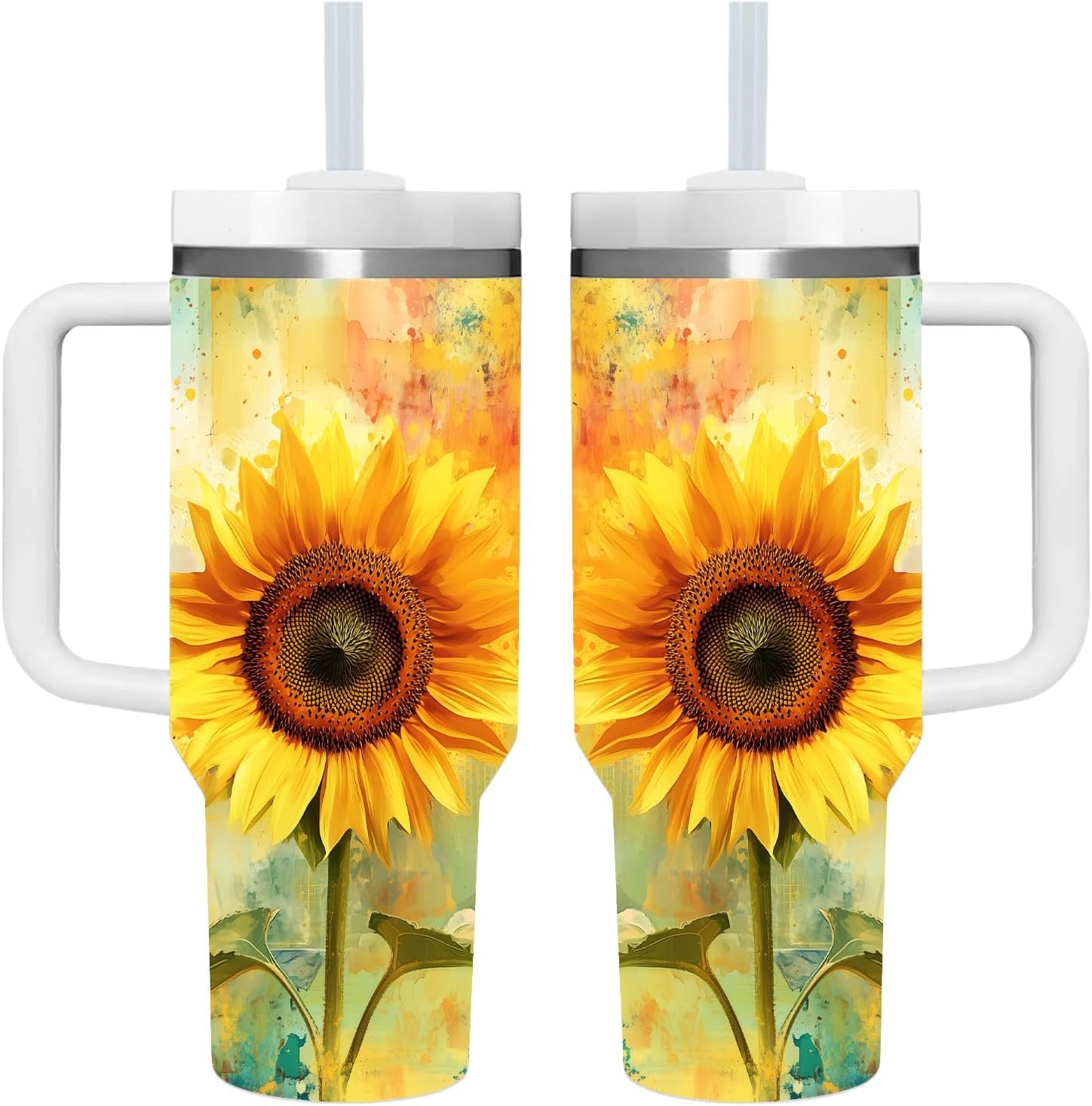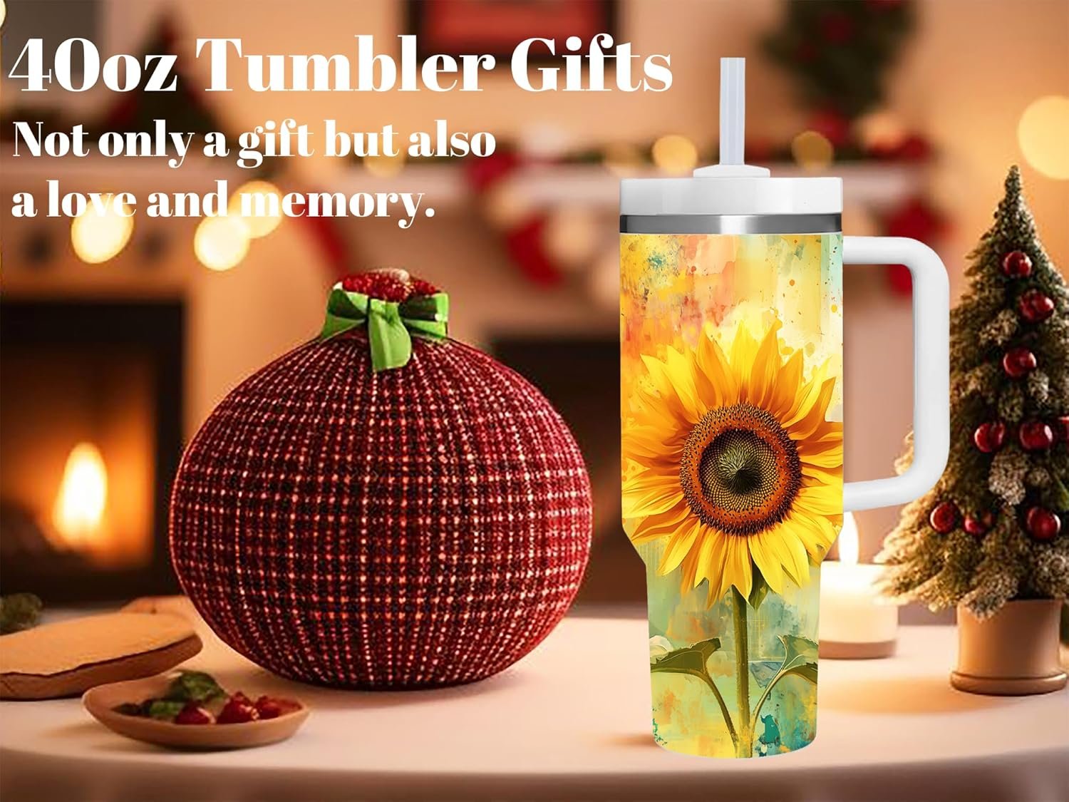 Sunflower Gifts.40oz Sunflower Tumbler with Handle.Sunflower Lover Cup Gift.Birthday Christmas Sunflower Tumblers Gift for Women Men.