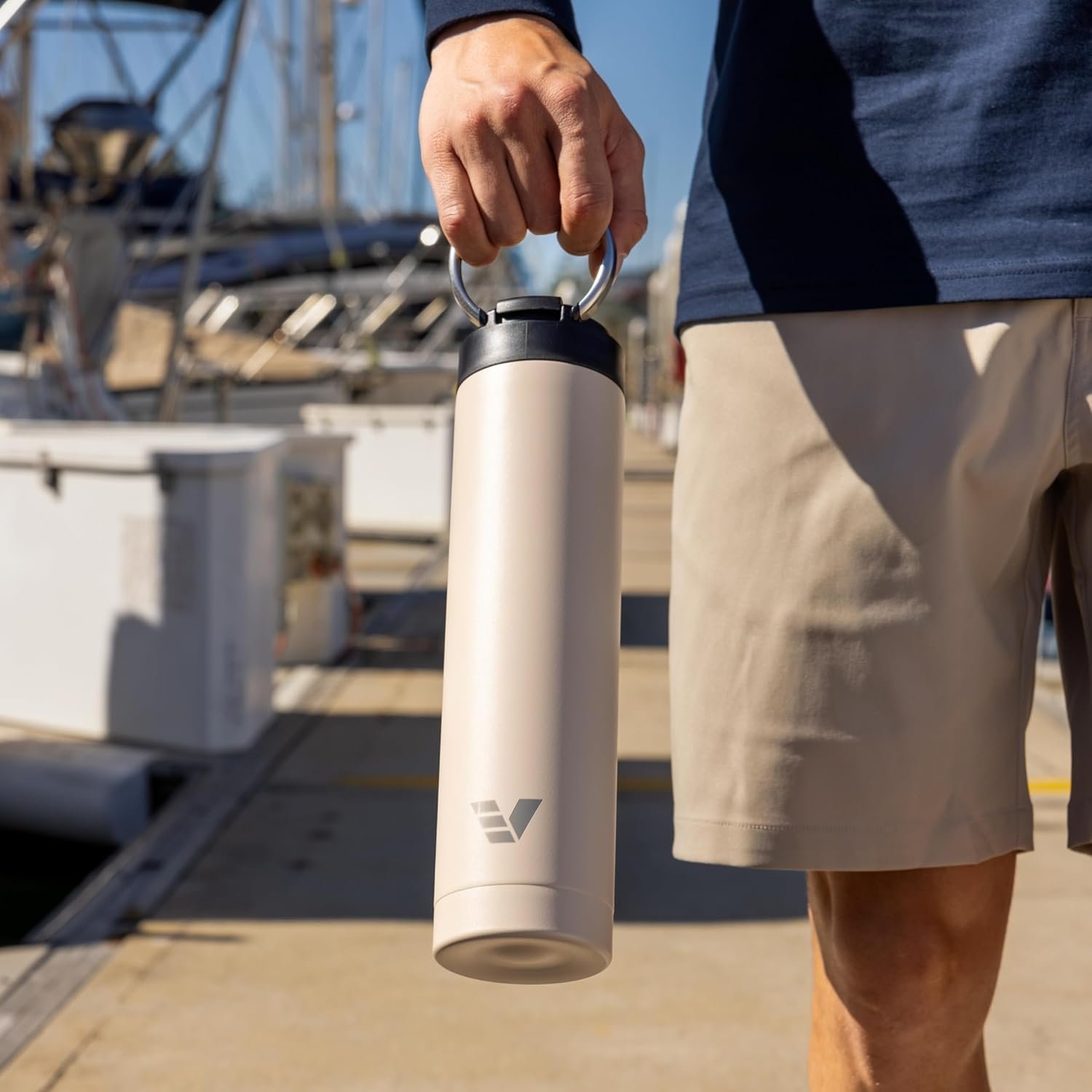 Super Maxi Stainless Steel Water Bottle 36oz – Double wall vacuum insulated | Integrated carry handle | leak proof flip top lid | Lightweight & stylish – Desert Beige