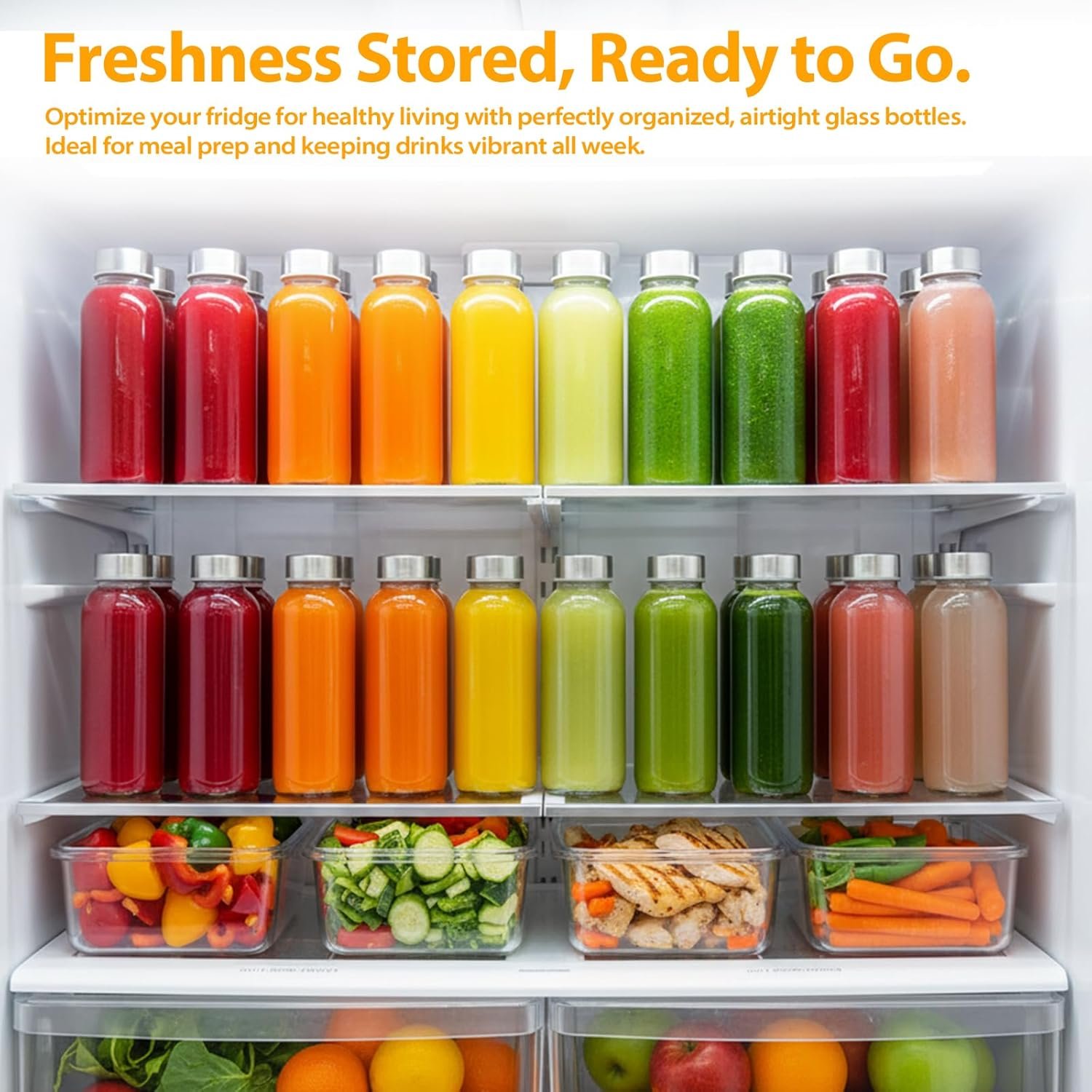 Sursip 10 oz Glass Juice Bottles, 10 Pack with Stainless Steel Lids – Reusable Small Glass Bottles for Smoothies, Iced Tea & Milk – Leak-Proof, BPA-Free, Dishwasher Safe