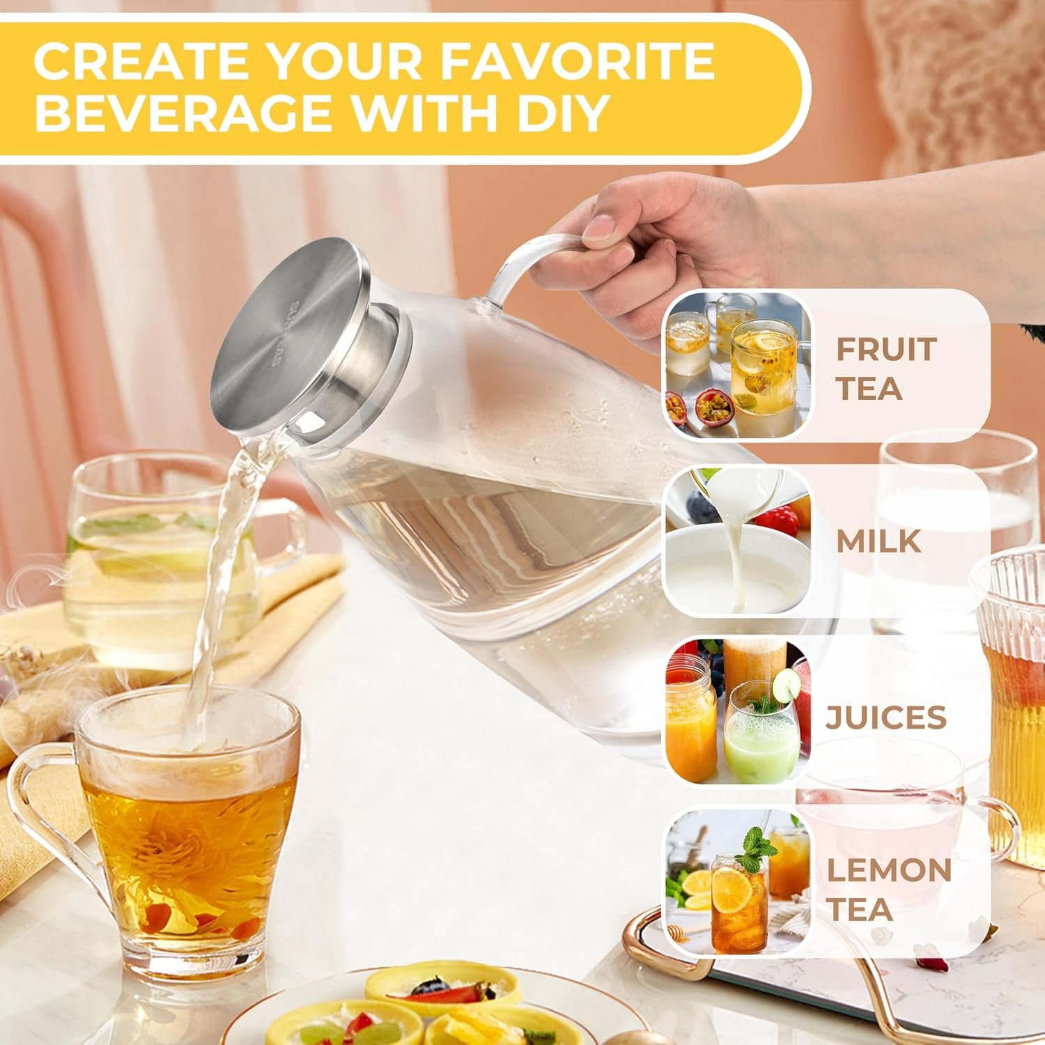 For All Occasions: SUSTEAS This water bottle is widely used for water, iced tea, hot tea, fruit-flavored water, homemade beverages, cold-brewed coffee, sangria, fruit juices, lemonade, milk, wine, cocktails, light smoothies and more
