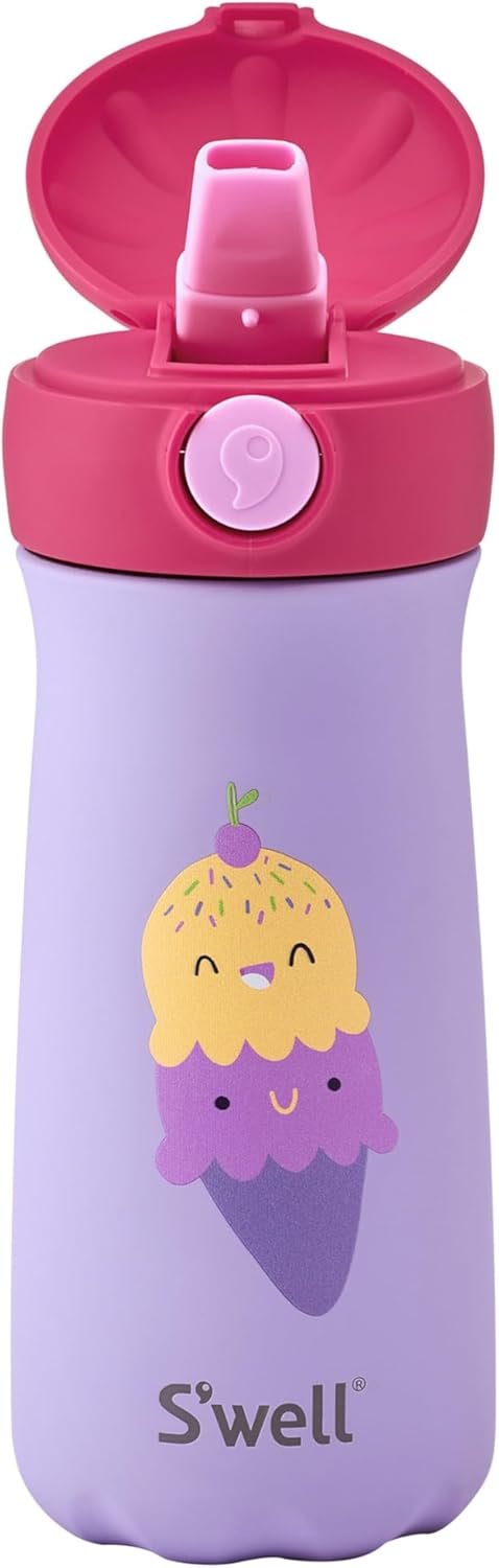 S’well Stainless Steel Kids Pop Top Traveler, 14oz, Happy Scoops, Triple Layered Vacuum Insulated Container Keeps Drinks Cold for 24 Hours, Leakproof, BPA Free, Easy Carrying On The Go