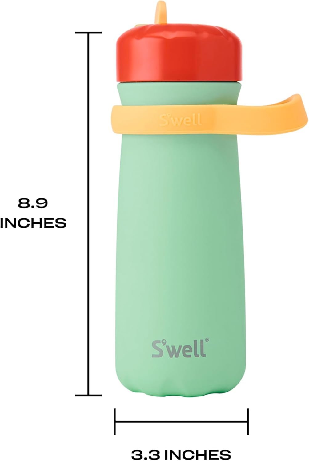 S’well Stainless Steel Kids Traveler with Flip Straw Lid, 16oz, Spring Green, Triple Layered Vacuum Insulated Containers Keeps Drinks Cold for 24 Hours, BPA Free, Easy Carrying On the Go