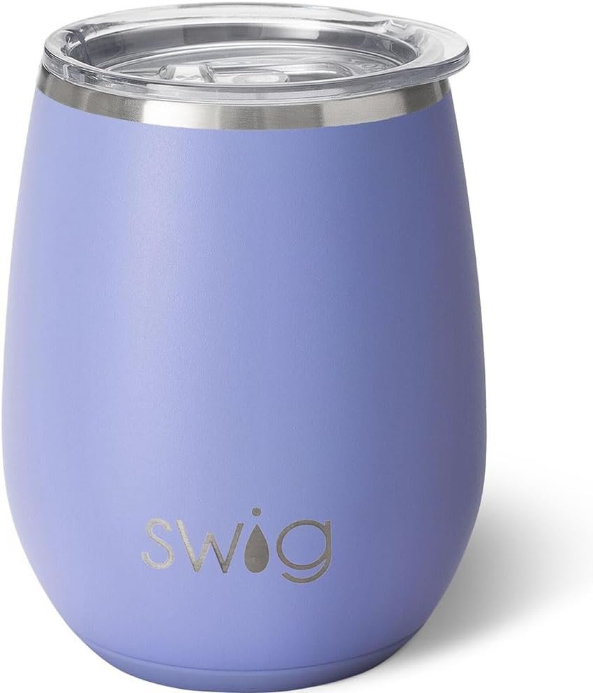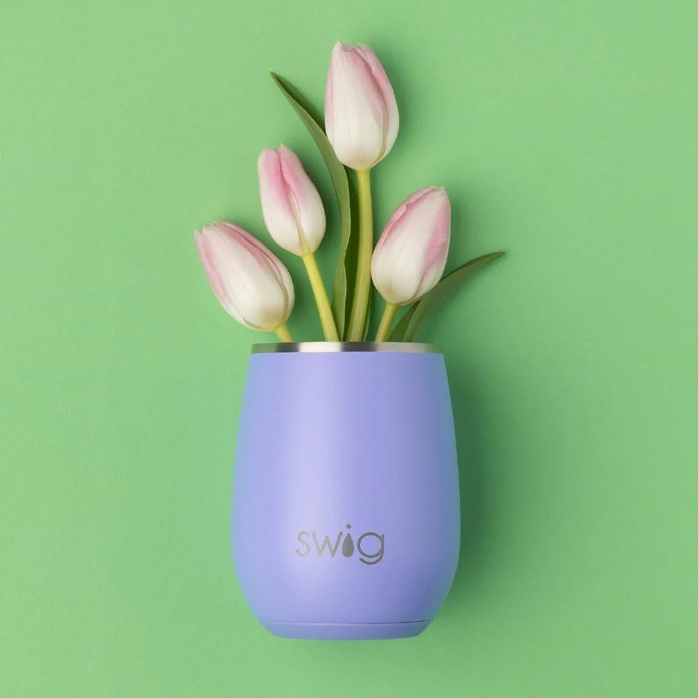 Swig Life 14oz Stemless Wine Cup, Insulated Wine Tumbler with Lid, Stainless Steel Travel Tumbler (Hydrangea)