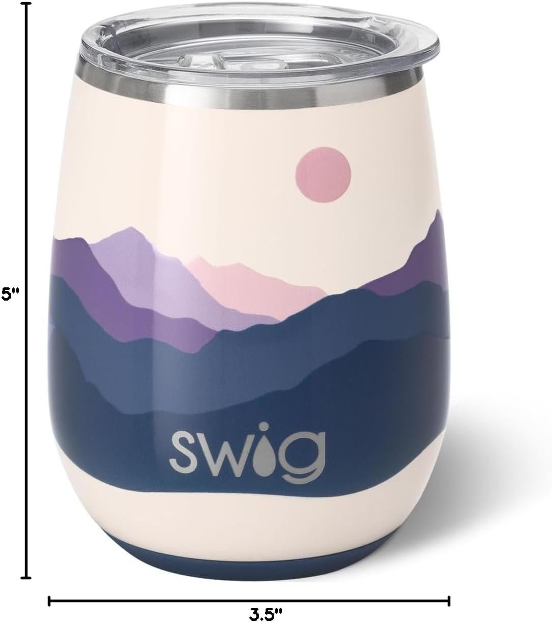 Swig Life 14oz Stemless Wine Cup, Insulated Wine Tumbler with Lid, Stainless Steel Travel Tumbler (Moon Shine)