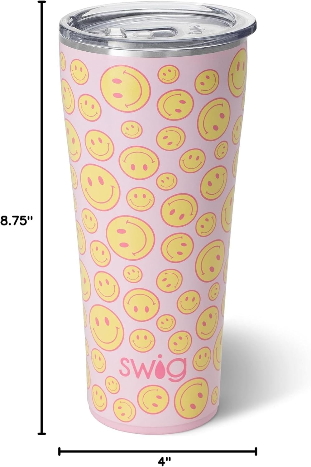 Swig Life 32oz Insulated Tumbler, Travel Coffee Tumbler with Lid, Cup Holder Friendly Travel Coffee Mug, Stainless Steel with Lid (Oh Happy Day)
