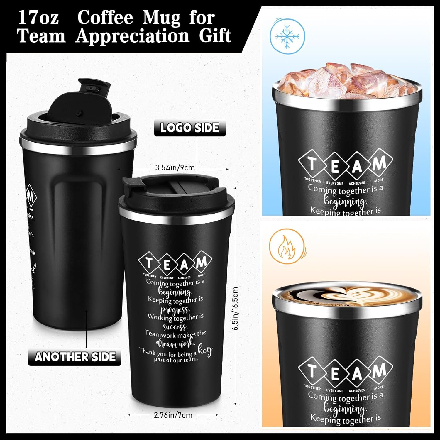 Suitable size: The size of this teamwork cup is about 17 oz, with large capacity to meet daily thirst needs, suitable for hot or cold water. The design of the cup is both artistic and practical, suitable for various occasions, such as company meetings, outdoor activities, birthday parties, etc., which can serve you for a long time