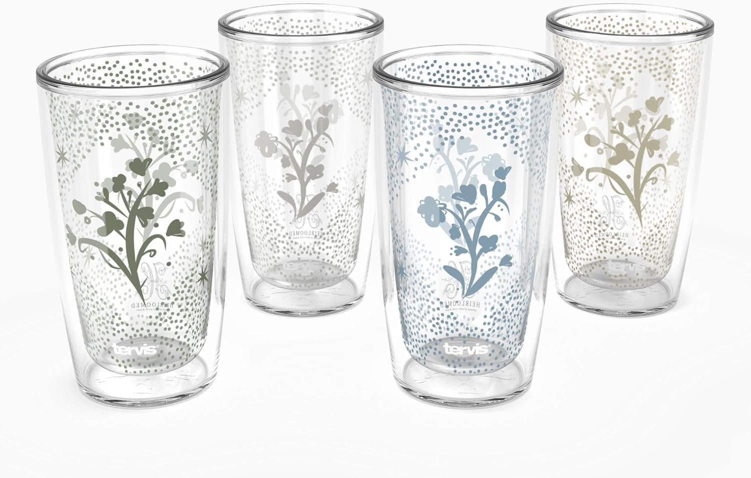 Tervis Heirloomed – Floral Collection Made in USA Double Walled Insulated Tumbler Travel Cup Keeps Drinks Cold & Hot, 16oz – 4pk, Assorted