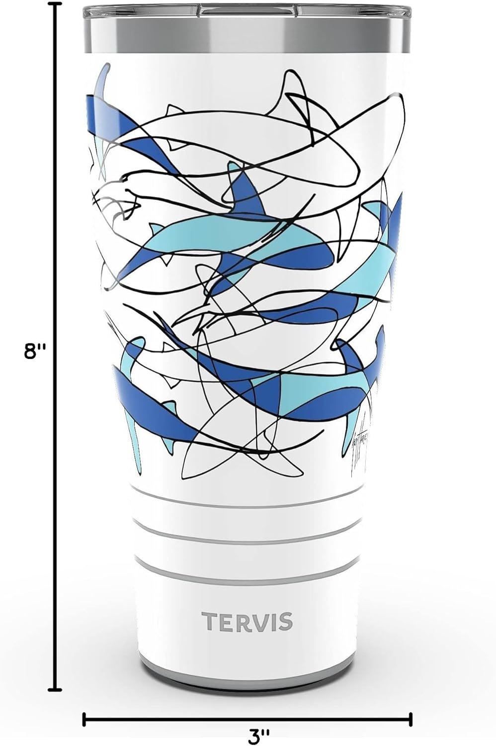 Tervis Traveler Guy Harvey Shark Camo Triple Walled Insulated Tumbler Travel Cup Keeps Drinks Cold & Hot, 30oz, Stainless Steel