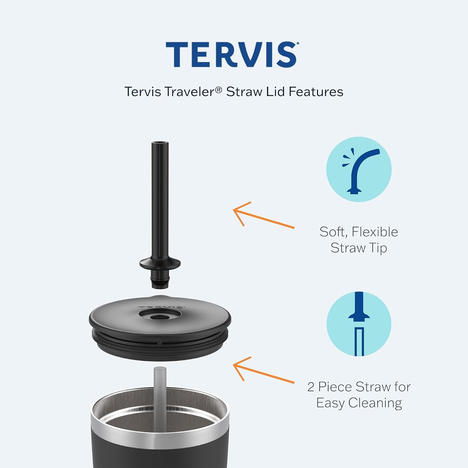 Straw Lid is BPA-free; minimizes spills; presses securely in place and removes easily with an ergonomic tab. The soft, flexible straw tip detaches in 2 pieces for easy cleaning.