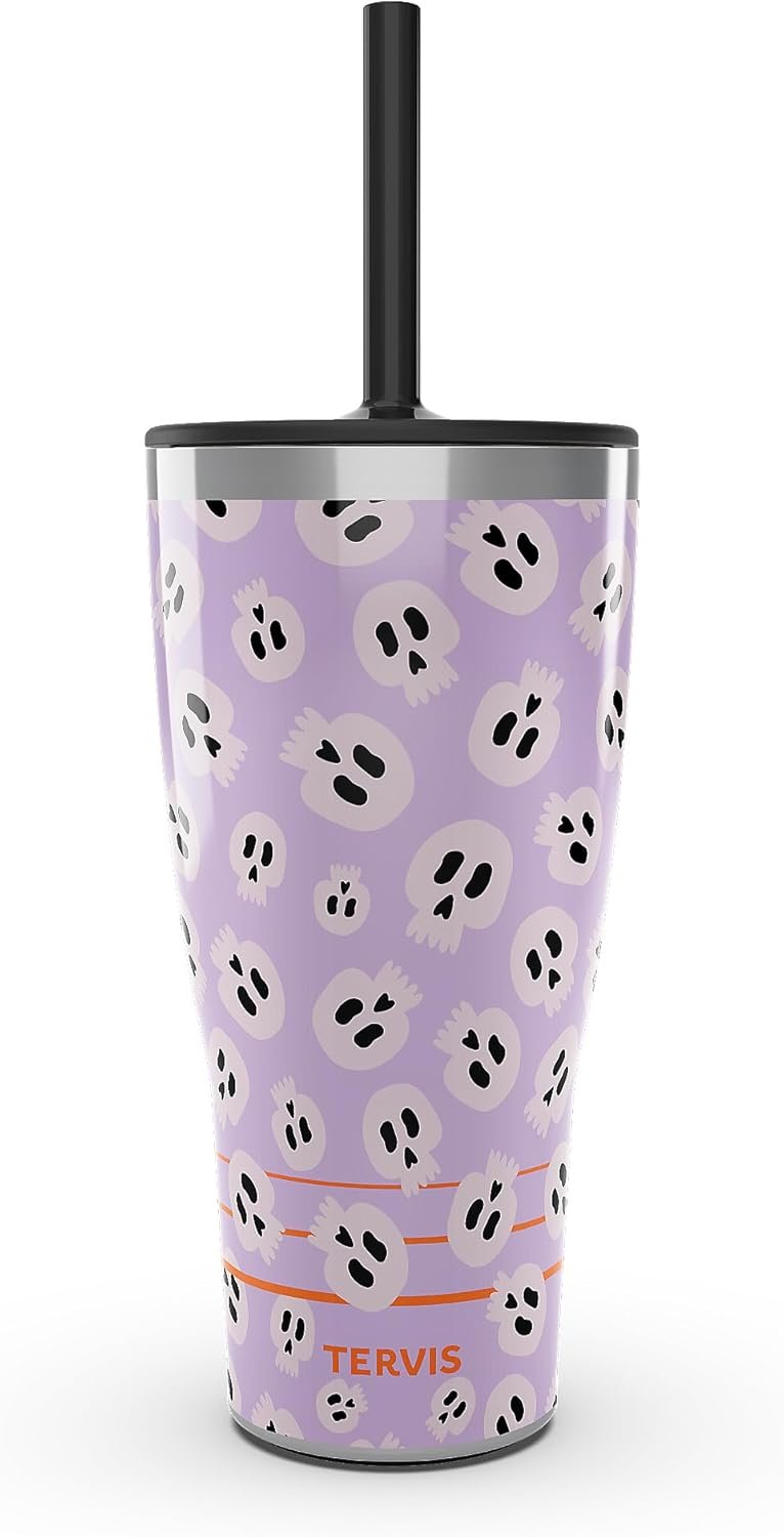 Tervis Traveler Skullicious Triple Walled Insulated Tumbler Travel Cup Keeps Drinks Cold & Hot, 30oz with Straw Lid, Stainless Steel