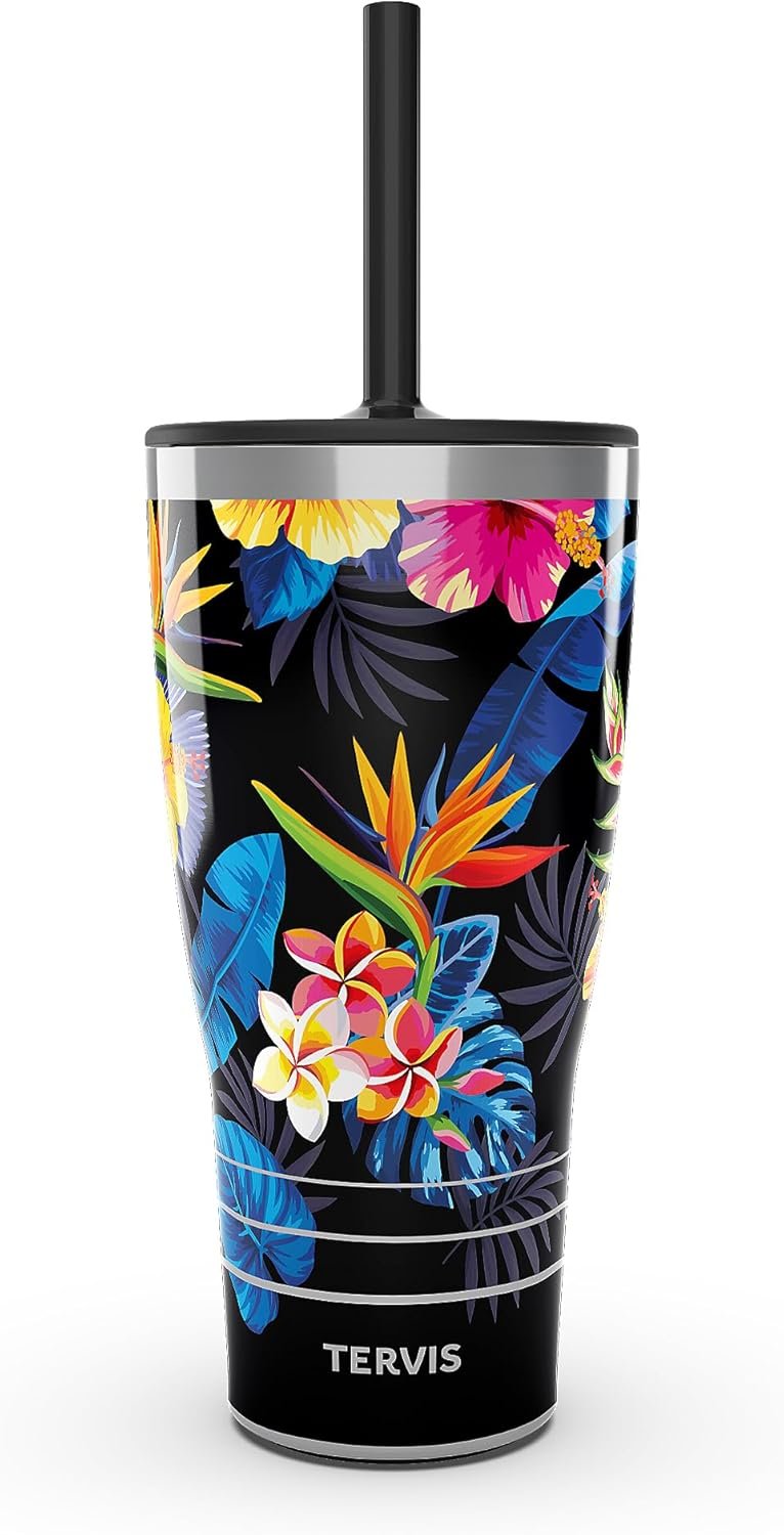 Tervis Traveler Tropical Floral Hibiscus Triple Walled Insulated Tumbler Travel Cup Keeps Drinks Cold & Hot, 30oz with Straw Lid, Stainless Steel