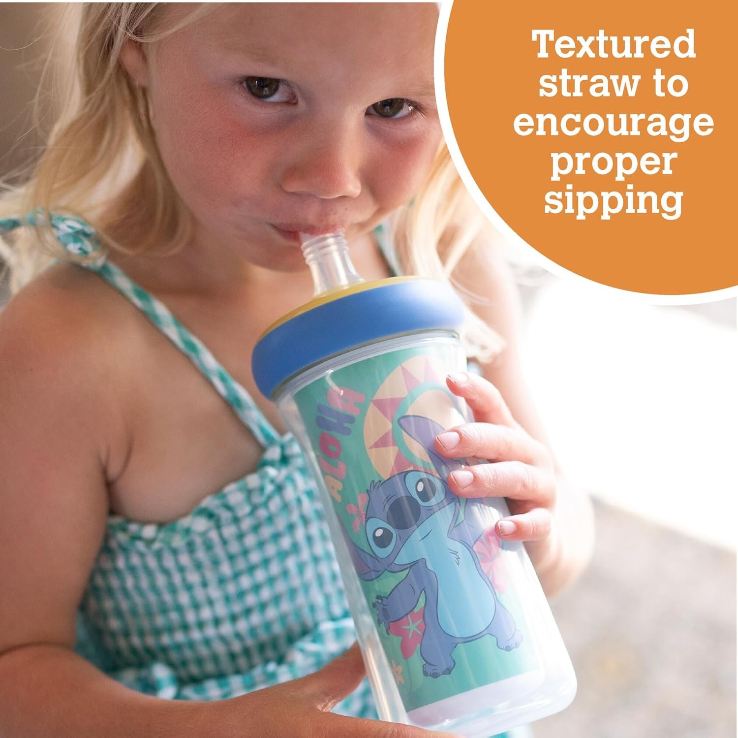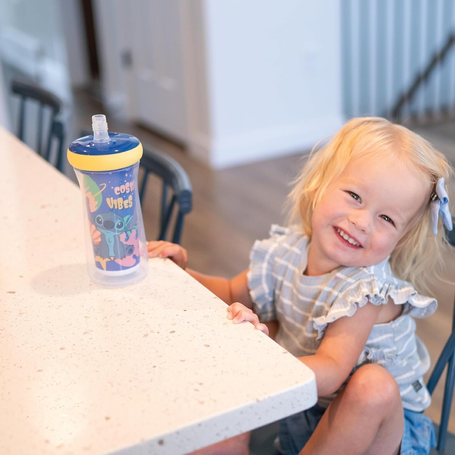 Keep it Cool with Stitch: insulated Stitch sippy cup cup with silicone straw allows your child to sip cool beverages while on the go with less mess