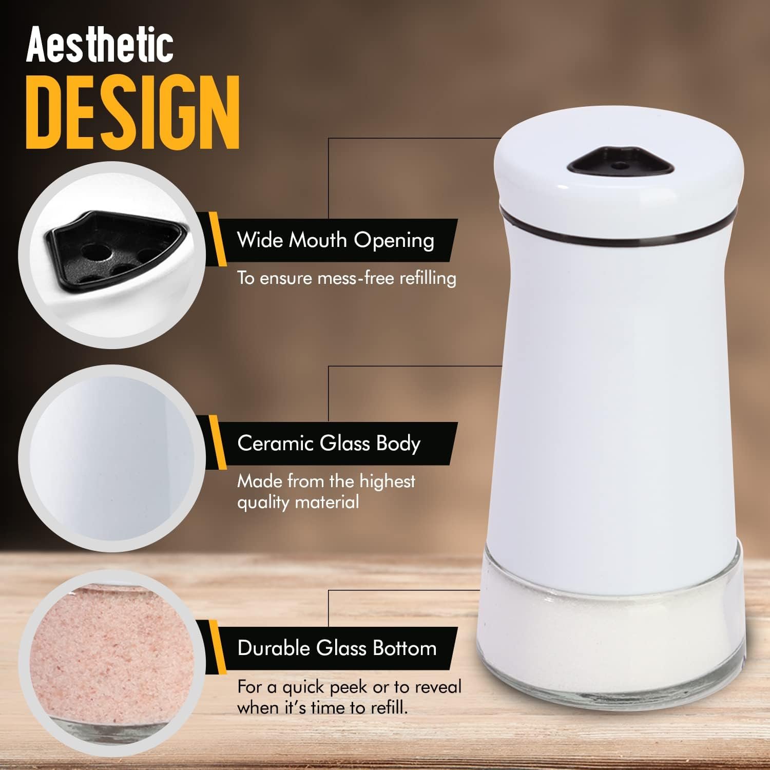 SET OF 2 SHAKERS: This salt-and-pepper set has two bottles for a classic salt and pepper set. Fill with salt and pepper and get more shakers for your favorite spices. You can also fill with kosher salt and Himalayan salt.