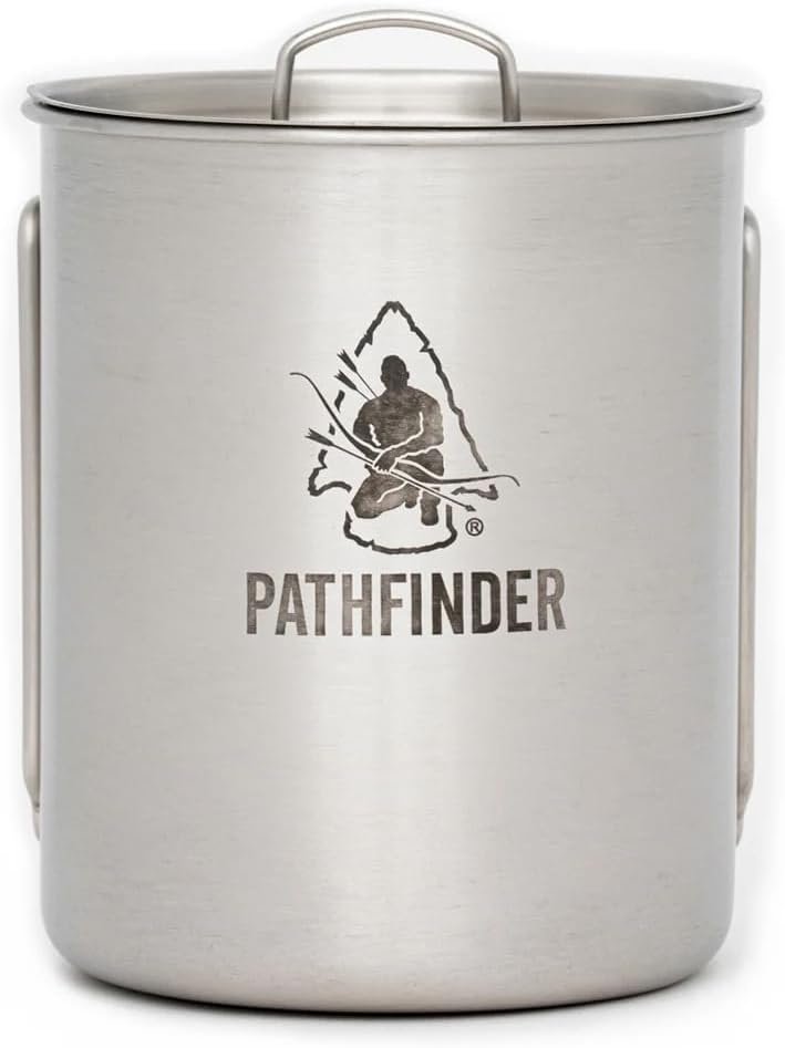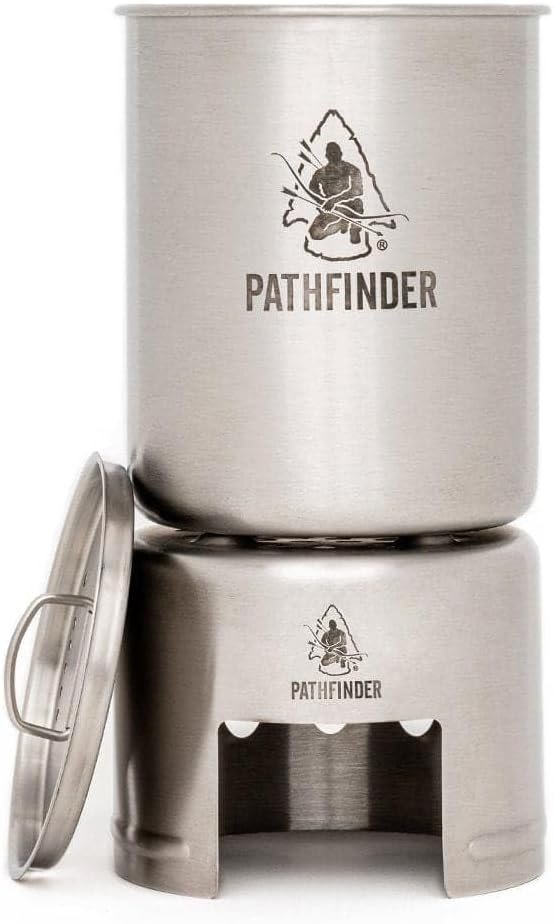 The Pathfinder School Stainless Steel 32oz Water Bottle, Cup with Bat Wing Handles, and Stove Set