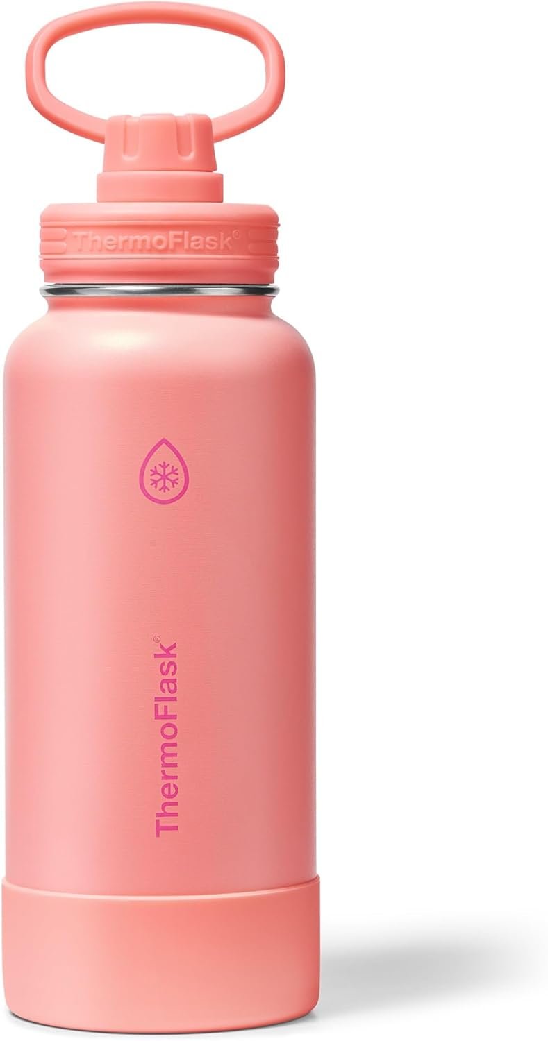 ThermoFlask 32 oz Double Wall Vacuum Insulated Stainless Steel Water Bottle with Spout Lid, Sunkissed Coral