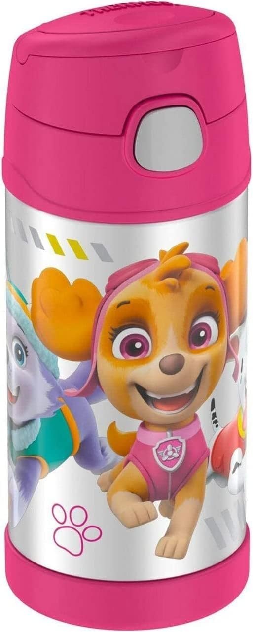 THERMOS FUNTAINER 12 Ounce Stainless Steel Vacuum Insulated Kids Straw Bottle, Paw Patrol