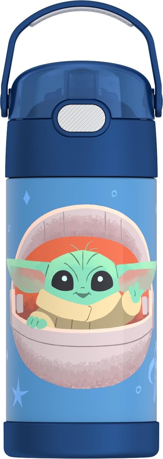 THERMOS FUNTAINER Water Bottle with Straw – 12 Ounce – Kids Stainless Steel Vacuum Insulated Water Bottle with Lid, Mandalorian The Child