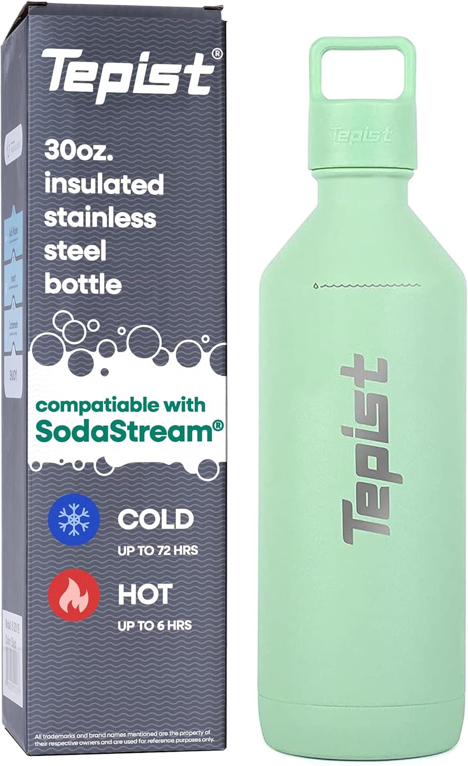 VACCUM SEALED: Keep your drinks ice cold for 24 hours (holds ICE for 72hrs) or hot for 6 hours with double-walled leak-proof Tepist bottle, 30 ounce capacity.