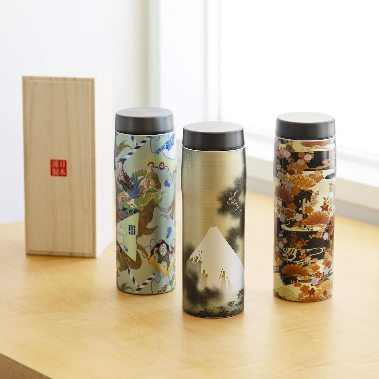 Tiger Japanese Art Insulated Travel Mug, 16oz (480ml), 100-Year Kyoto Yuzen Tradition, Made in Japan Premium Stainless Steel Water Bottle, Vacuum Hot & Cold, with Paulownia Gift Box, MJX-B481DG