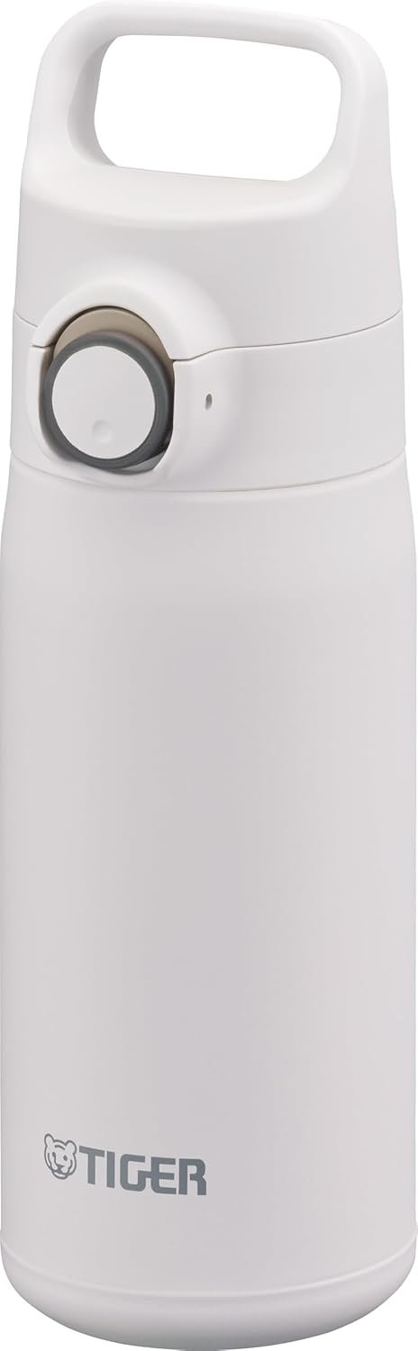 TIGER Water Bottle 16.9 oz (500ml), Ultra-Light Vacuum Insulated Travel Mug with Slanted Handle, One-Push Leak-Proof Lid, 18/8 Stainless Steel, MTA-J050WH, Smoke White