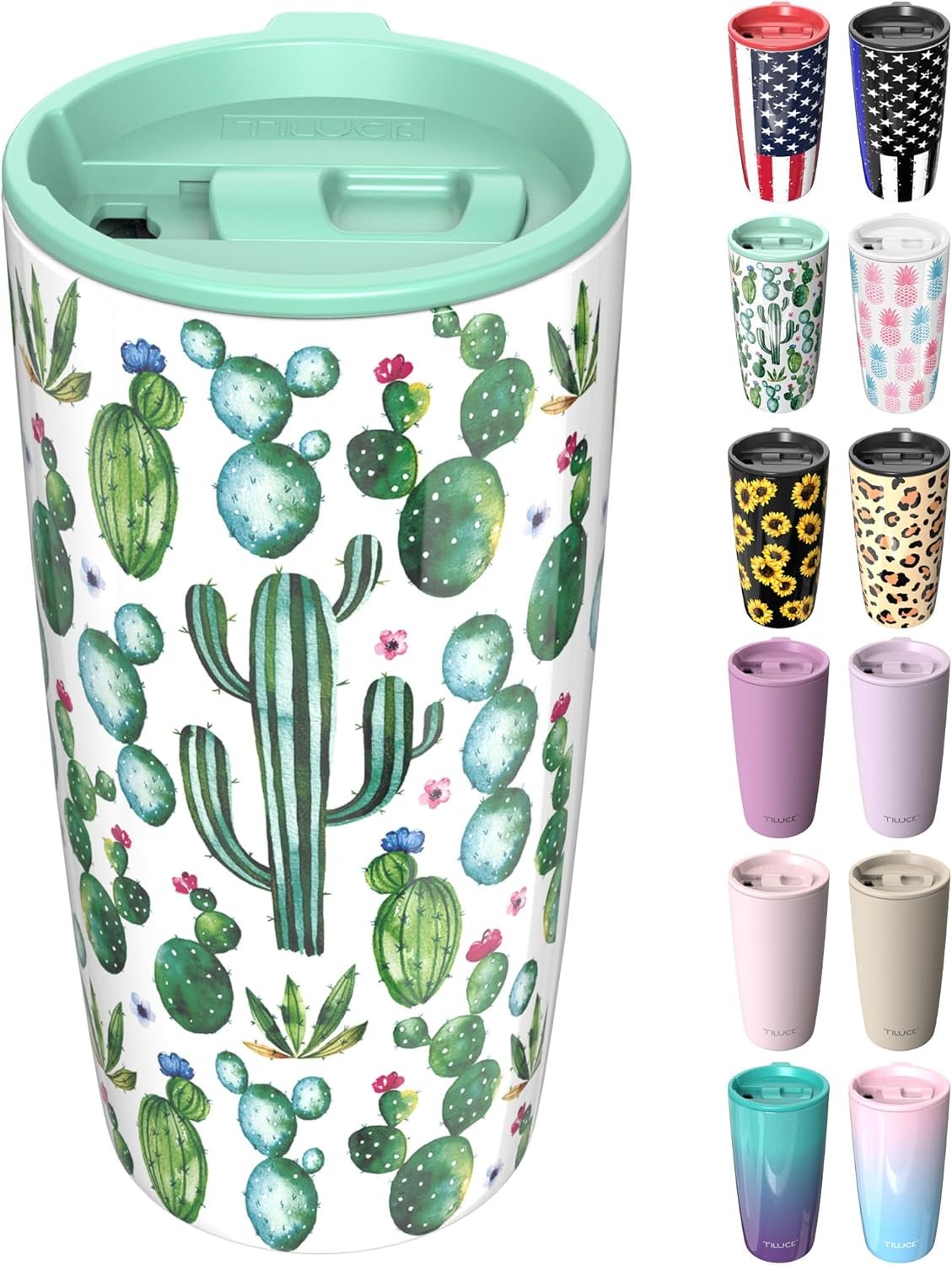 TILUCK 20 oz Tumbler with Lid, Vacuum Insulated Stainless Steel Coffee Mug, Double-Walled Travel Tumbler for Hot and Cold Drinks(Cactus, 20oz)