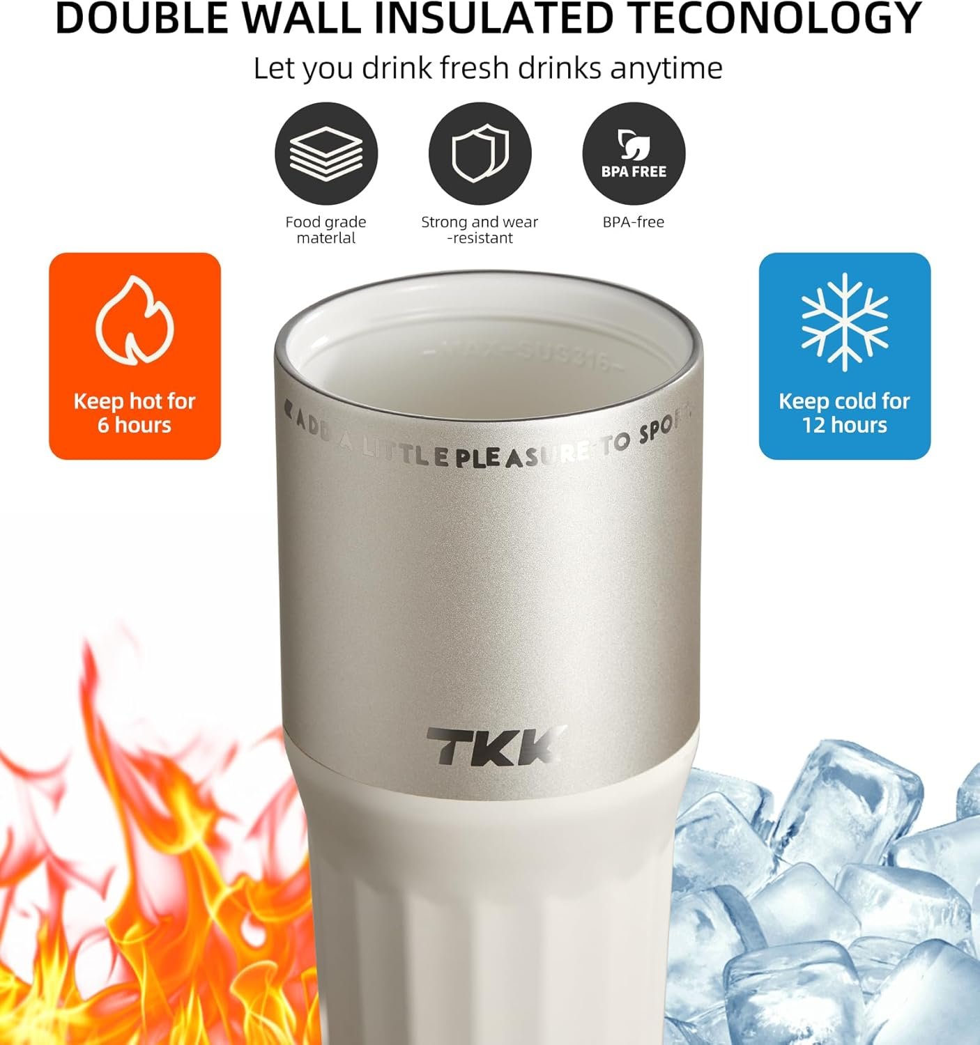 Brand TKK Material Stainless Steel + PP Lid + Ceramic Coated Feature Insulated Travel Coffee Mug, with Handle, Insulated Bottle Type Insulated Tumbler Capacity 24 oz (700ml) Colors Black, Granite White, Porcelain White, Alpine Green, Grey, Silver Occasion Good choice for home, office, bars, restaurants, travel, camping. Perfect gift for bachelorette parties, Birthday, Valentine’s day, Mother’s day, Father’s day, Thanksgiving day, Christmas day or any occasion Package Contents 1 bottle + 1 Straw + 1 Lid