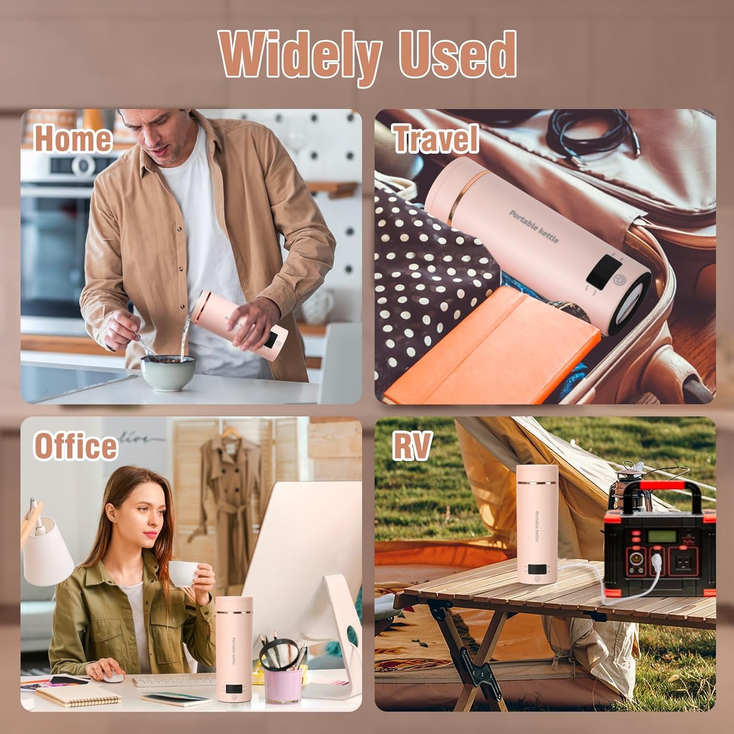 4 Smart Temperature Presets: Portable electric kettle has 4 preset temperatures (212-176-131-113°F), through the LCD screen of the cup body to display the temperature easily switched. Travel water boiler can brew coffee, different kinds of tea, milk , ect. Small kettle is not only a electric kettle, but also a water cup, can greatly improve the happiness of life.