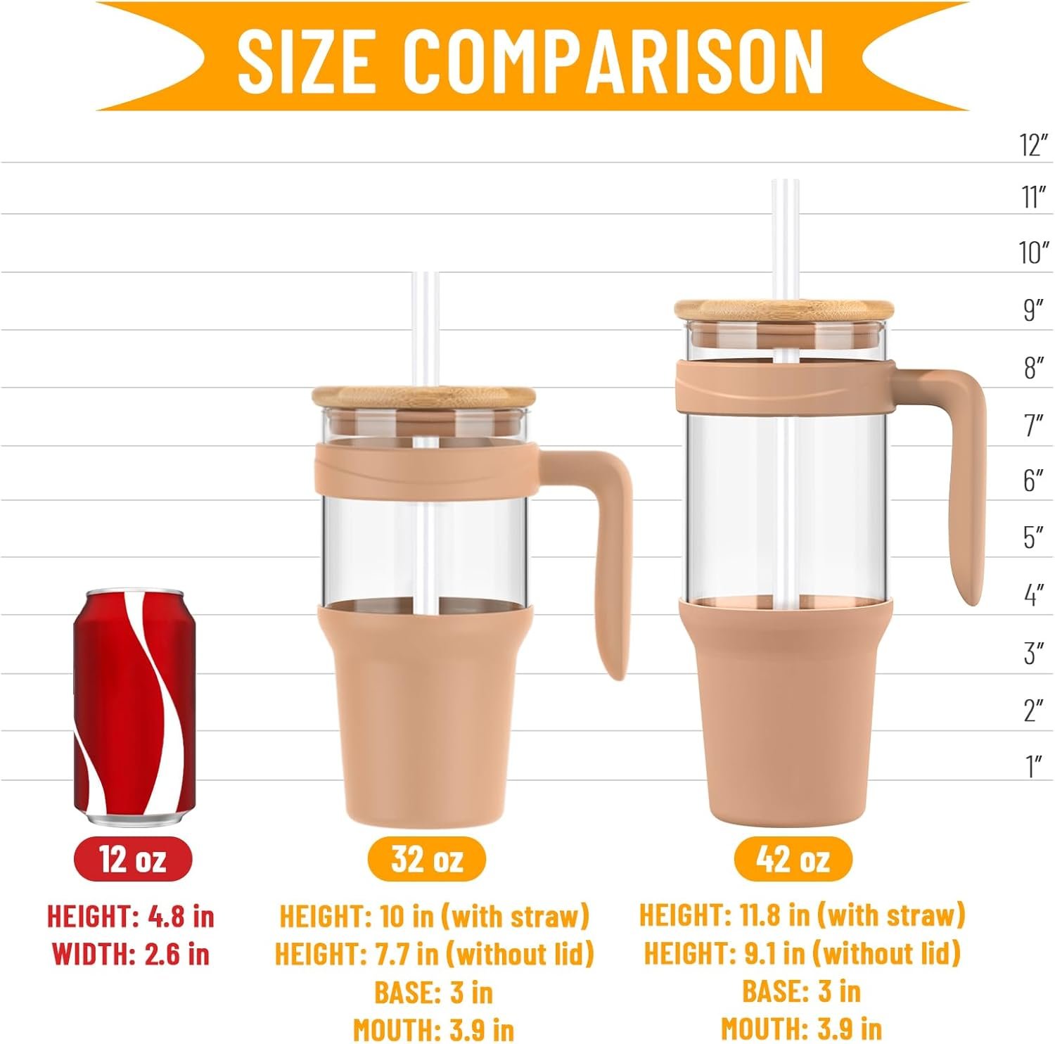 Premium and Sturdy Material: Made of high borosilicate glass, which is stronger and sturdier than regular glass; lid includes a food-grade silicone cover; colorful sleeve and reusable plastic straws are BPA-free