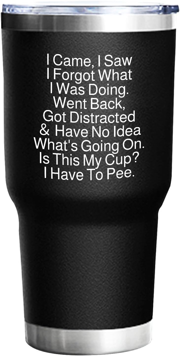 Gift For Many Occasions: The funny I Came I Saw I Forgot What I Was Doing travel tumbler is funny christmas gift, birthday gift ideas for yourself, friends, sister, dad, mom, boss, buddy, neighbors. This stainless steel tumbler will thrill the lucky recipient!