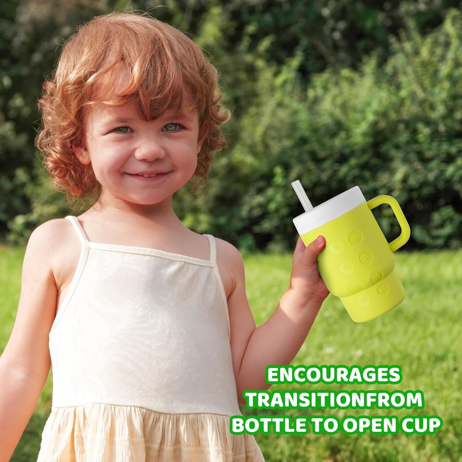 Tumbler Silicone Sippy Cup for Toddler with Straw and Handle, Water Bottle for Baby& Infant, 9oz Kids Cups Spill Proof, BPA Free, Toddler Travel Essential, Yellow