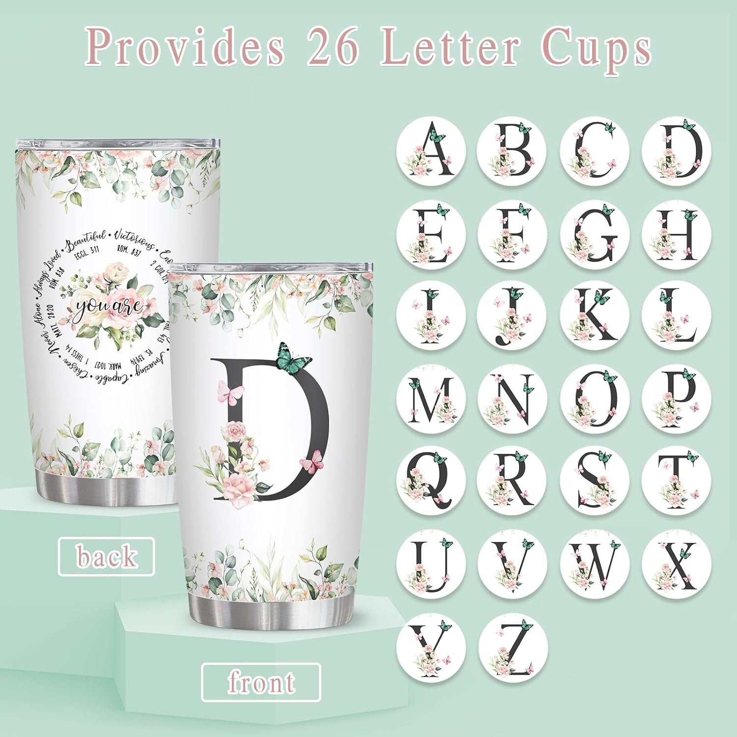 Monogram&Religious Design:Our initial tumbler gift not only has monogram design, but also combines christian inspiration self-care elements, making it a great as a personalized christian gift for women