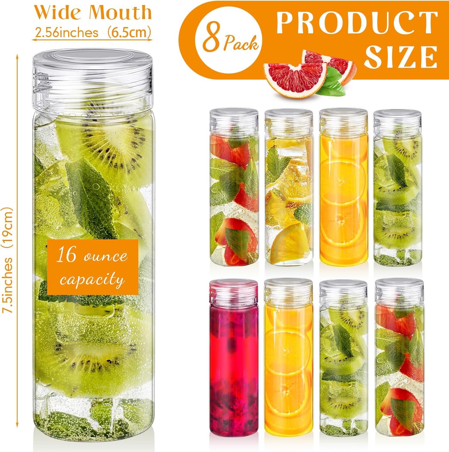 What You Receive: the package comes with 8 pieces of glass bottles with lids, with a capacity of 16 oz, light in weight, comfortable and compact to hold, easy to carry, convenient for your daily life, and you can also share them with your friends, family and others