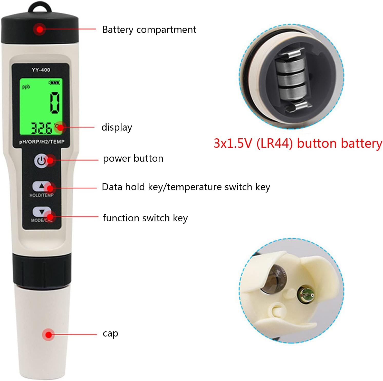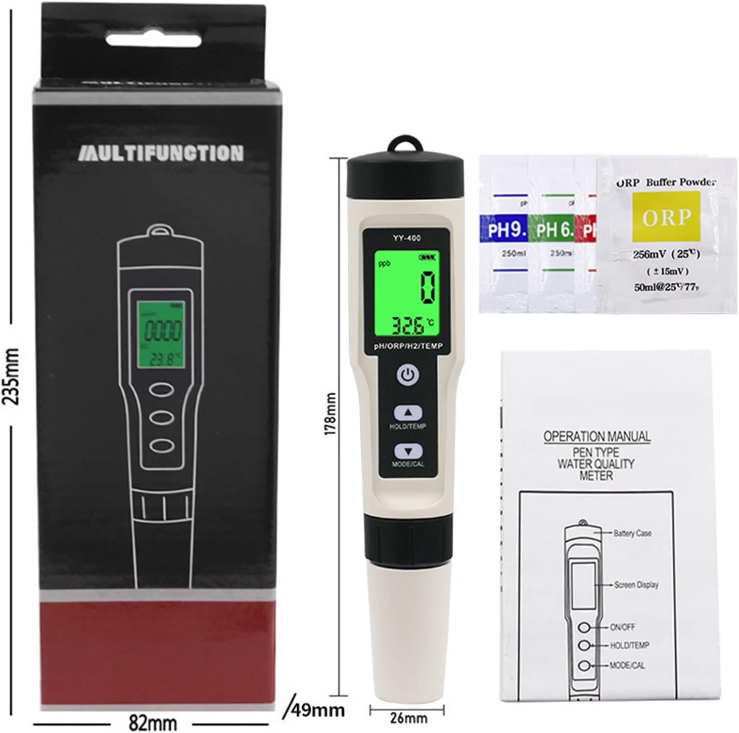 4-in-1 tester, which can measure ORP, and Temp value with at the same for time.