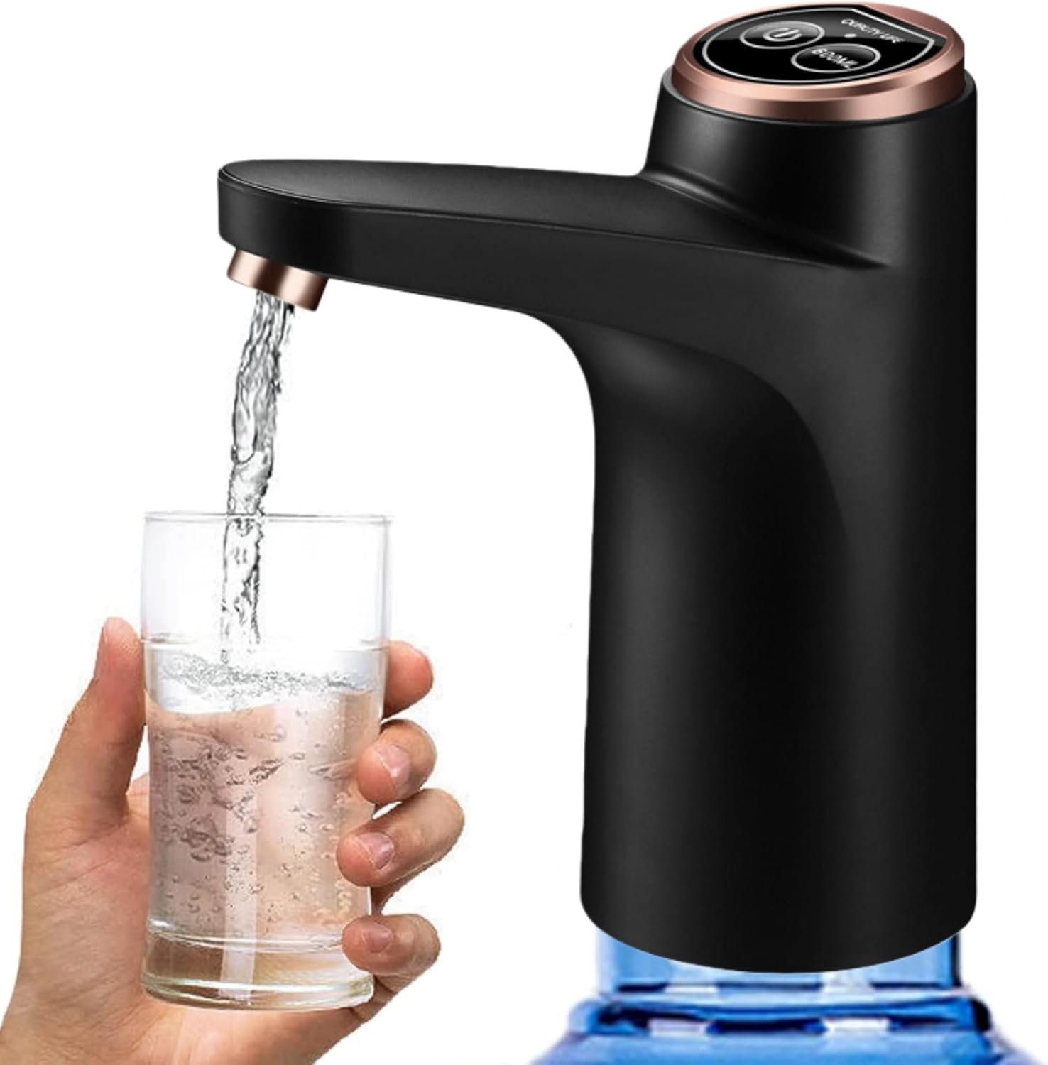USB Rechargeable Electric Water Pump for 5 Gallon Bottle, Portable Water Dispenser Pump with 1200mAh Battery for Home Office Camping (Black)