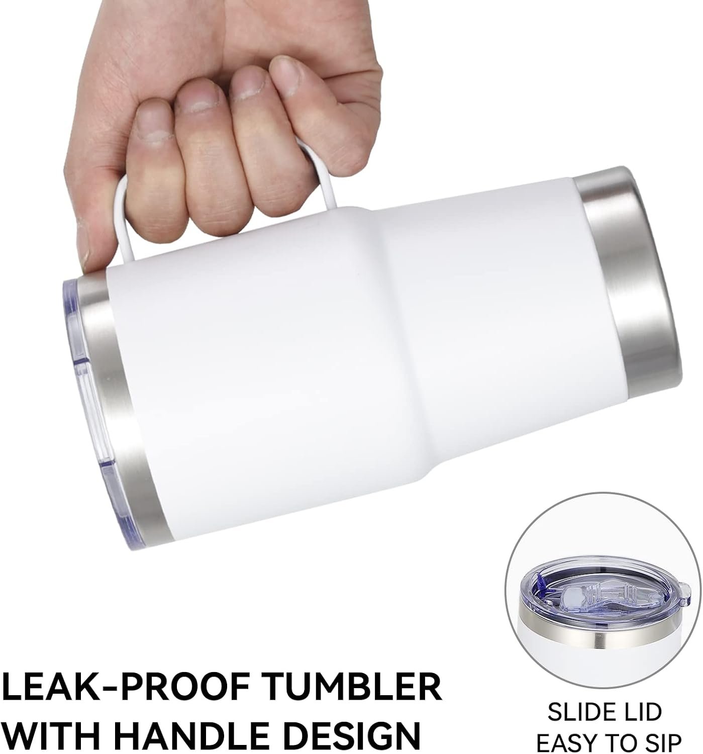VEGOND 20 oz Tumbler with Handle Lid and Straw, Stainless Steel Insulated Travel Coffee Mug Spill Proof Double Wall Metal Tumbler Cup Keeps Drink Hot and Cold, White 1 Pack