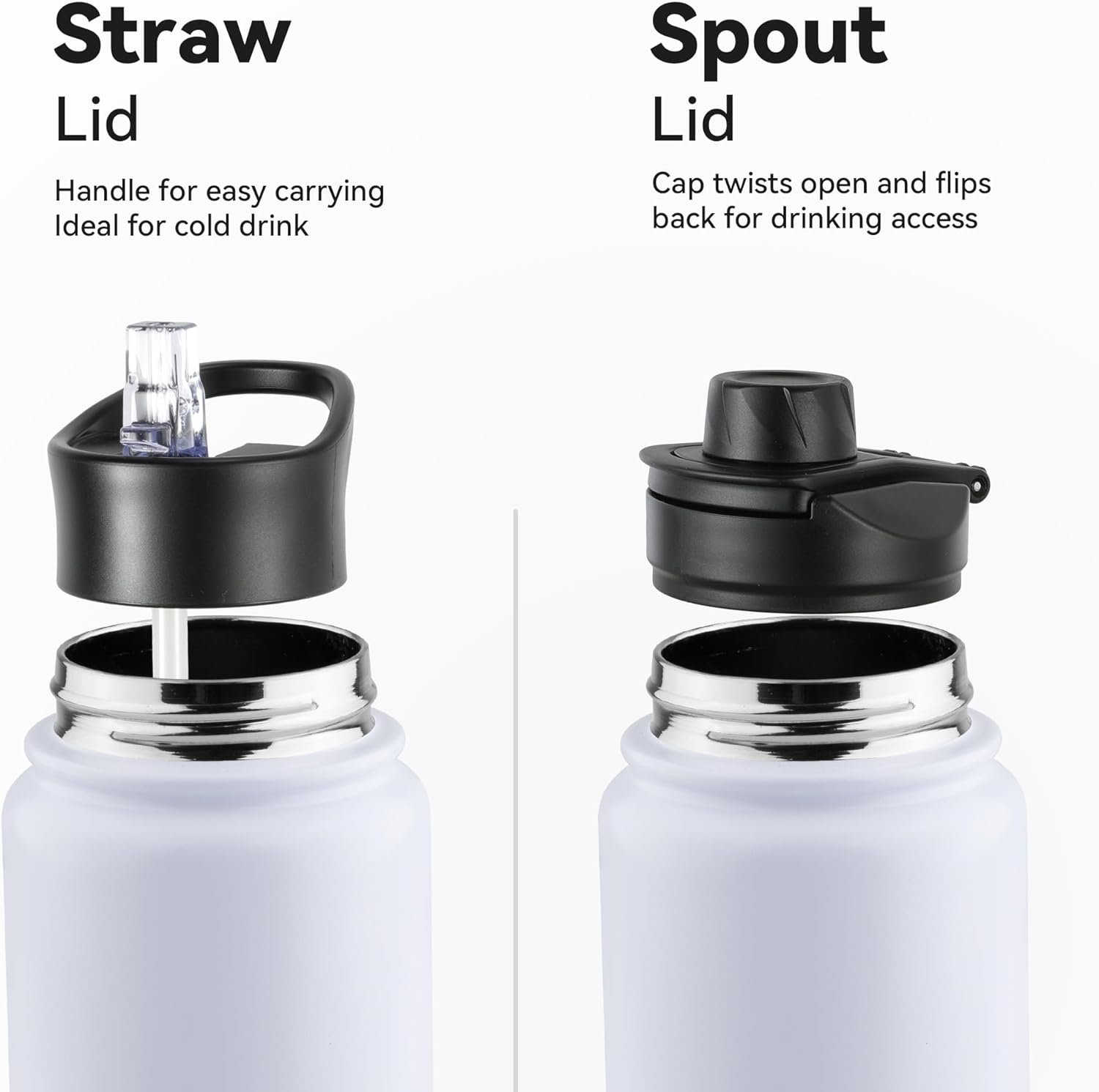 24oz Insulated Water Bottles with Straw & Wide Mouth Lid for Sport