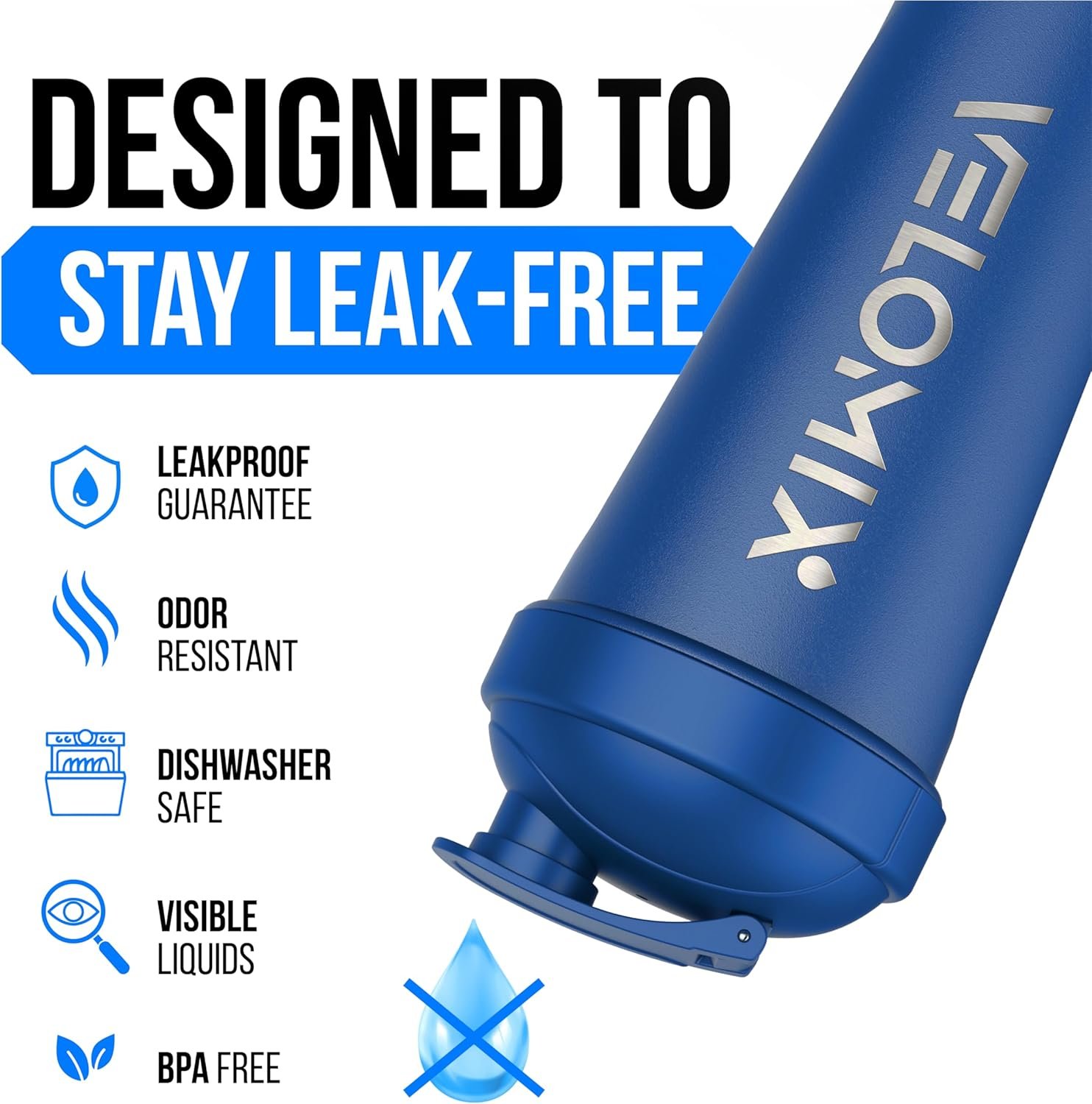 LEAKPROOF, BAG-SAFE LID – Secure flip-top design with a tight seal helps prevent spills in your gym bag, backpack, or car. One-hand open for quick sips; locks down when fully closed.