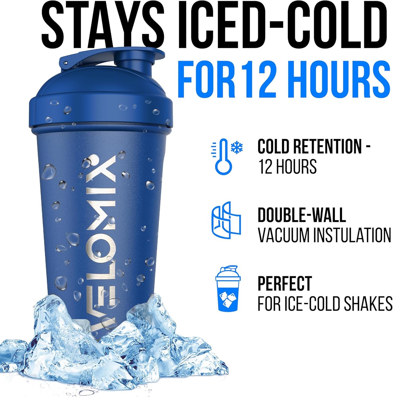 STAYS ICE-COLD FOR 12 HOURS – Double-wall vacuum insulation keeps shakes and water cold for up to 12 hours and reduces outside condensation (no sweaty bottle). Built for ice-cold protein shakes and daily hydration.