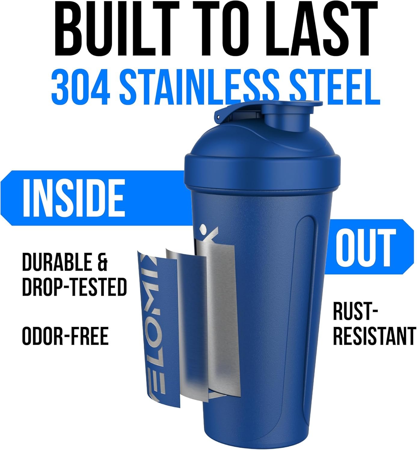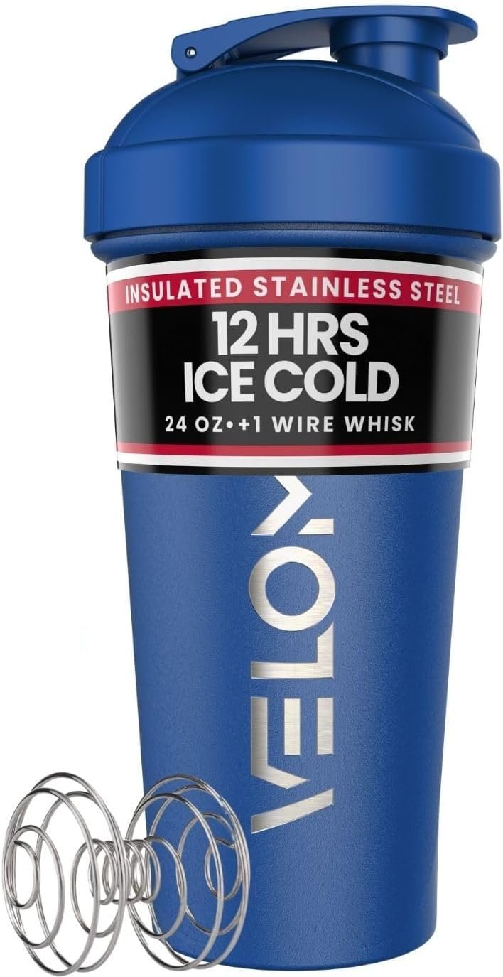 VELOMIX 24 oz Stainless Steel Shaker Bottle with Wire Whisk – Leakproof, No Clumps, Odor Resistant Metal Shaker Bottle, Insulated Shaker Cups for Protein Shakes, Pre Workout and Smoothie(Blue)
