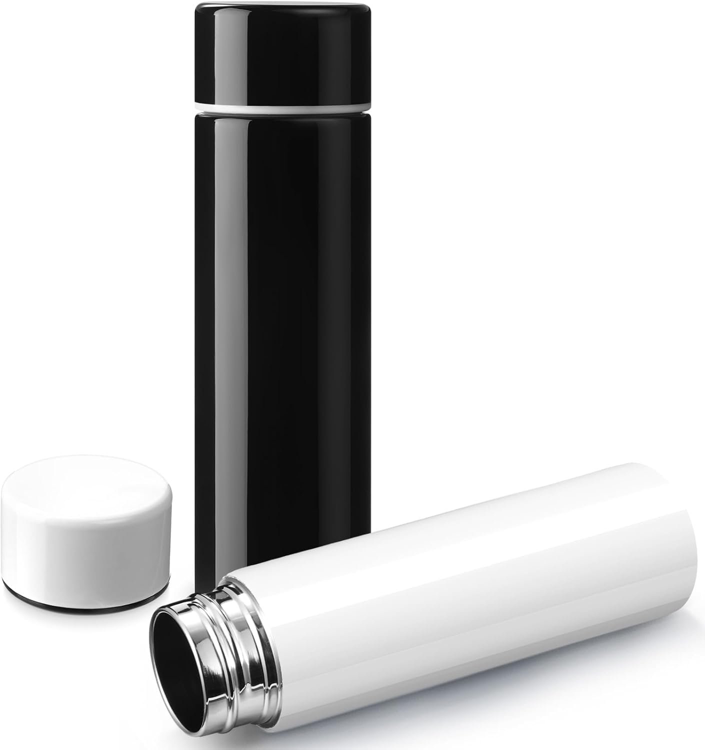 Vesici Mini Water Bottles 4.4 oz Cute Small Insulated Stainless Steel Purse Water Bottles Pocket Slim Flask Keeps Drink Cold and Hot for Women Lunch Bag Coffee(Black, White,2 Pack)