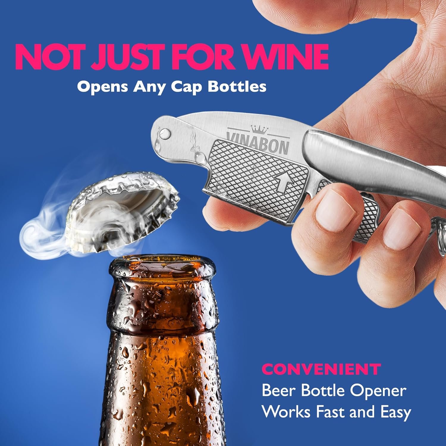 VINABON Wine Corkscrew Opener – Upgraded 2026 Multifunctional 3-in-1 Stainless Steel Wine Key Wine Bottle Opener with Beer Opener for Servers and Bartenders. Includes WineGuide Ebook