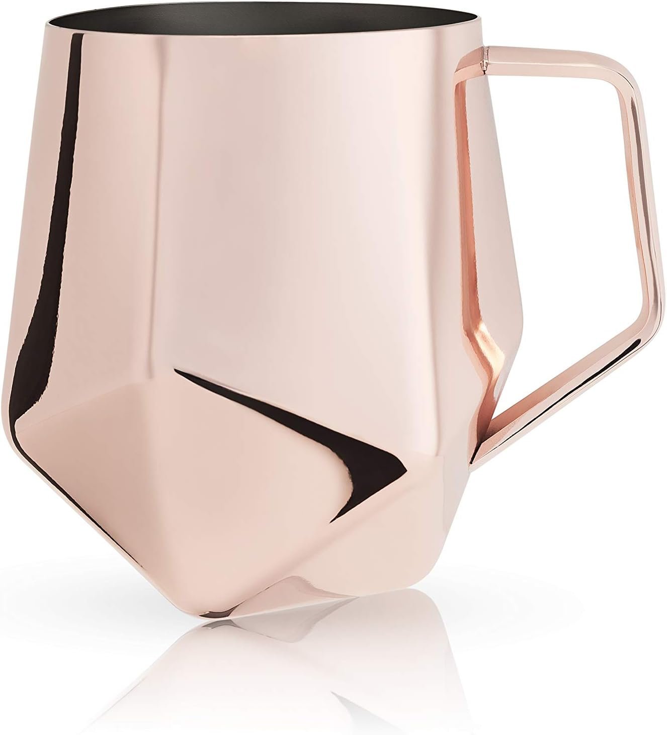 Stainless steel with a gleaming copper overlay is fashioned into this modern take on the classic Moscow Mule Cocktail Mug. Polyfaceted sides round out smoothly as they reach the rim for the perfect sip. Hang it up in the kitchen or fill it to the brim with the classic concoction of vodka, ginger, lime, and fresh mint. Holds 18 oz Stainless steel Polished copper plating Faceted design Hand wash only From graceful decanters to stylish coupes, Viski is dedicated to elegant design. Each collection explores a timeless cocktail style such as Art Deco or mid-century modern for a refined addition to your barware collection.