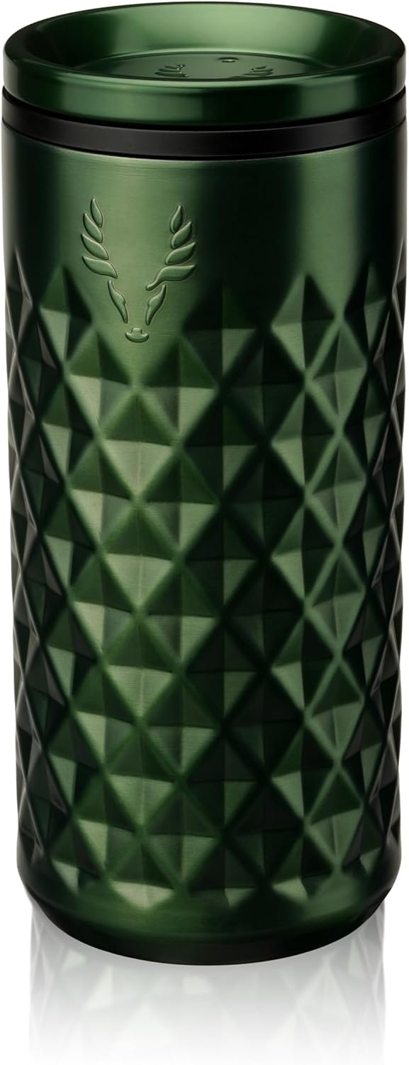 Viski Paragon Stainless Steel Highball Tumbler Cup with Lid, Insulated Ceramic Lined Metal Cocktail Glass for Patio, Outdoor Party, Wedding Gifts, Drink Lover Gifts, 16 oz Set of 1, Satin Green