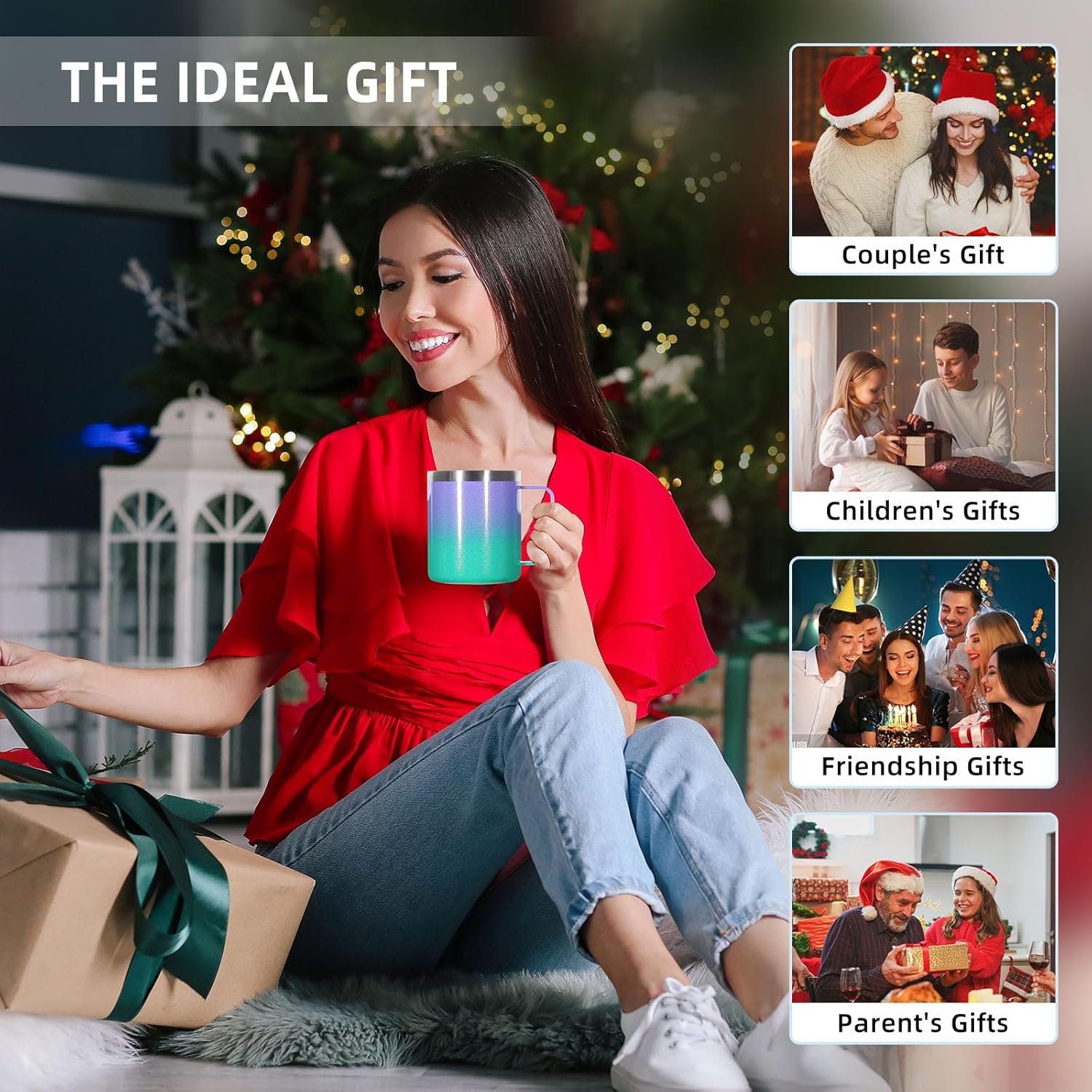 Volhoply 14oz Insulated Stainless Steel Coffee Mug with Leakproof Lid,Double Wall Vacuum Travel Coffee Cup with Handle,Reusable Cups Tumbler,Camping Mugs Keep Hot,Ideal Gifts(Purple Green,1)