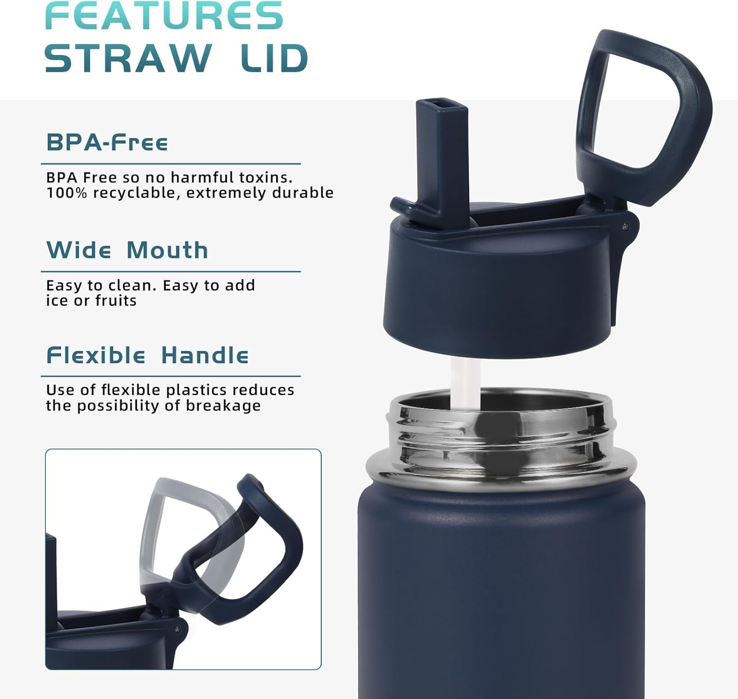 【Double Wall Vacuum Insulation】Volhoply utilizes double-wall vacuum insulation technology to keep drinks cold for 24 hours and hot for 12 hours,provides excellent heat retention and makes the bottle sweat-free,so you don’t have to worry about messing up it,keeps kids hydrated around the clock.
