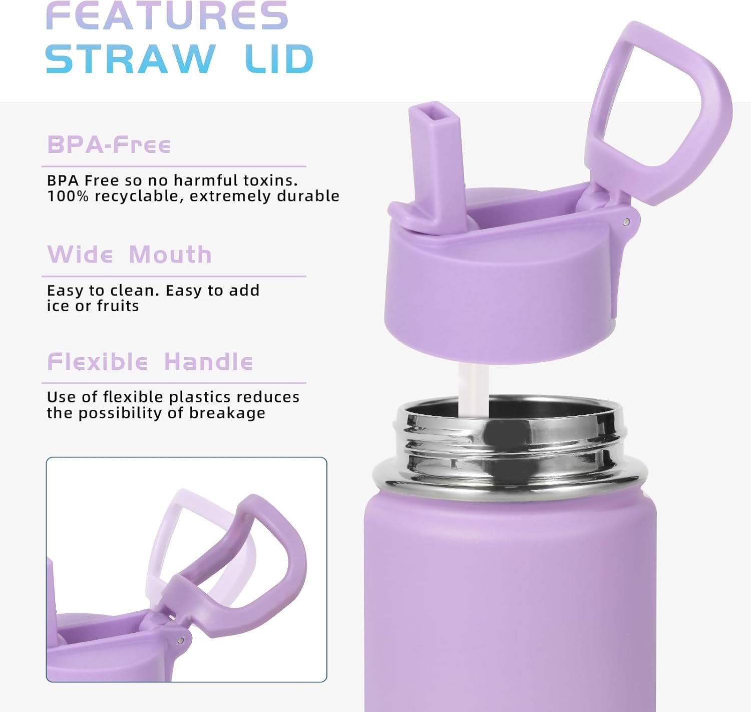 Volhoply 14oz KIds Stainless Steel Insulated Leakproof Water Bottle with Straw Lid and Silicone Boot,BPA-Free Easy Use for Boys&Girls,Double Wall Vacuum Bottles(Lavender Blue,1)