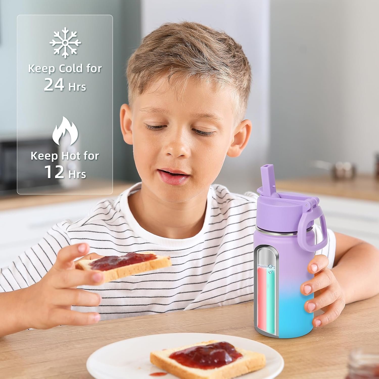【Double Wall Vacuum Insulation】Volhoply utilizes double-wall vacuum insulation technology to keep drinks cold for 24 hours and hot for 12 hours,provides excellent heat retention and makes the bottle sweat-free,so you don’t have to worry about messing up it,keeps kids hydrated around the clock.