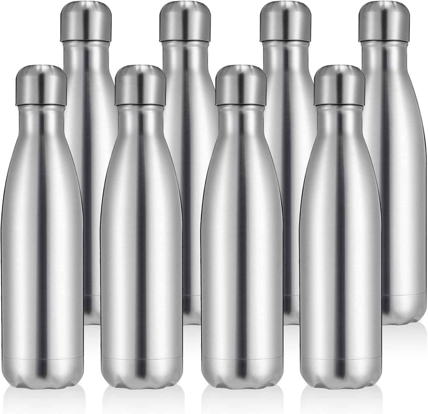 Volhoply 17oz Stainless Steel Water Bottles Bulk, Leakproof Insulated Metal Water Bottle for Sports, Travel, Adult, Available in Packs of 1, 4, 8, or 12(Silver,8 Pack)